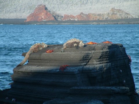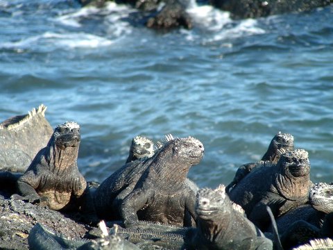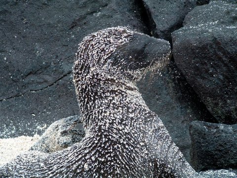 This is my favorate. This is a marine iguana getting some sun. They look dinosaurs. Its easy to see how people make the mistake that modern lizards were the same as those anchient beasts.