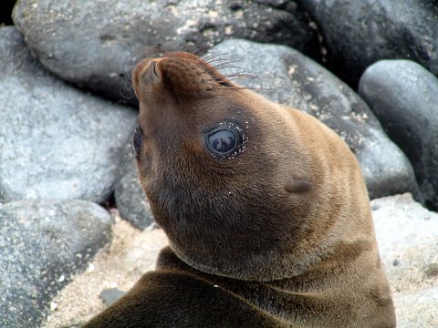 This is a typical Sea Lion. They are all over the Galapagos. For some reason they don't seem to have any bones in the irnecks. They will sleep with their heads laying on their backs. Looks very uncomfortable, but if it were they wouldn't do it.