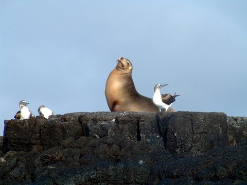 These two look like they are in the midst of a Disney production. Ladies and Gentelmen, introducting, Sea Lion and Boobie!!!! Lets give them a hand.