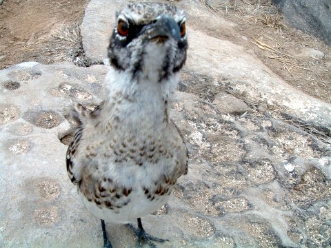 This guy kept following me around. I finally got a picture of him. Here he is putting his beak on the lens of my camera. This just goes to prove how friendly the animals are. They have no fear of any animals.